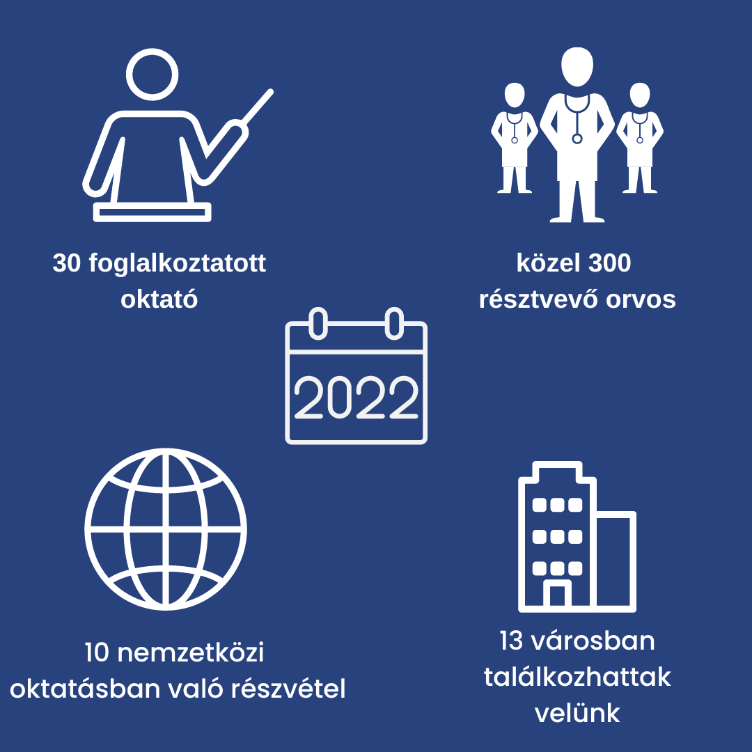 2022-ben sikerült öt belföldi tanfolyamot lebonyolítanunk. Az Ízületpótlás és Töréskezelés I. kreditpontszerző kurzusunkat Pécsre, Győrbe, és Szegedre juttattuk el.