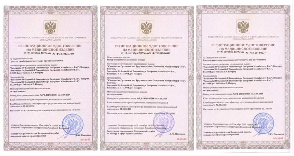 Újabb mérföldkőhöz ért oroszországi leányvállalatunk, a térd után a trauma és a csípő termékek regisztrációja is megtörtént. Ez azt jelenti, hogy a Sanatmetal CIS termékei orosz gyártmánynak minősülnek, így előnyt élveznek az orosz piacon a külföldi termékekkel szemben, és az eurázsiai piacon is nagyobb kereslet várható rájuk.
