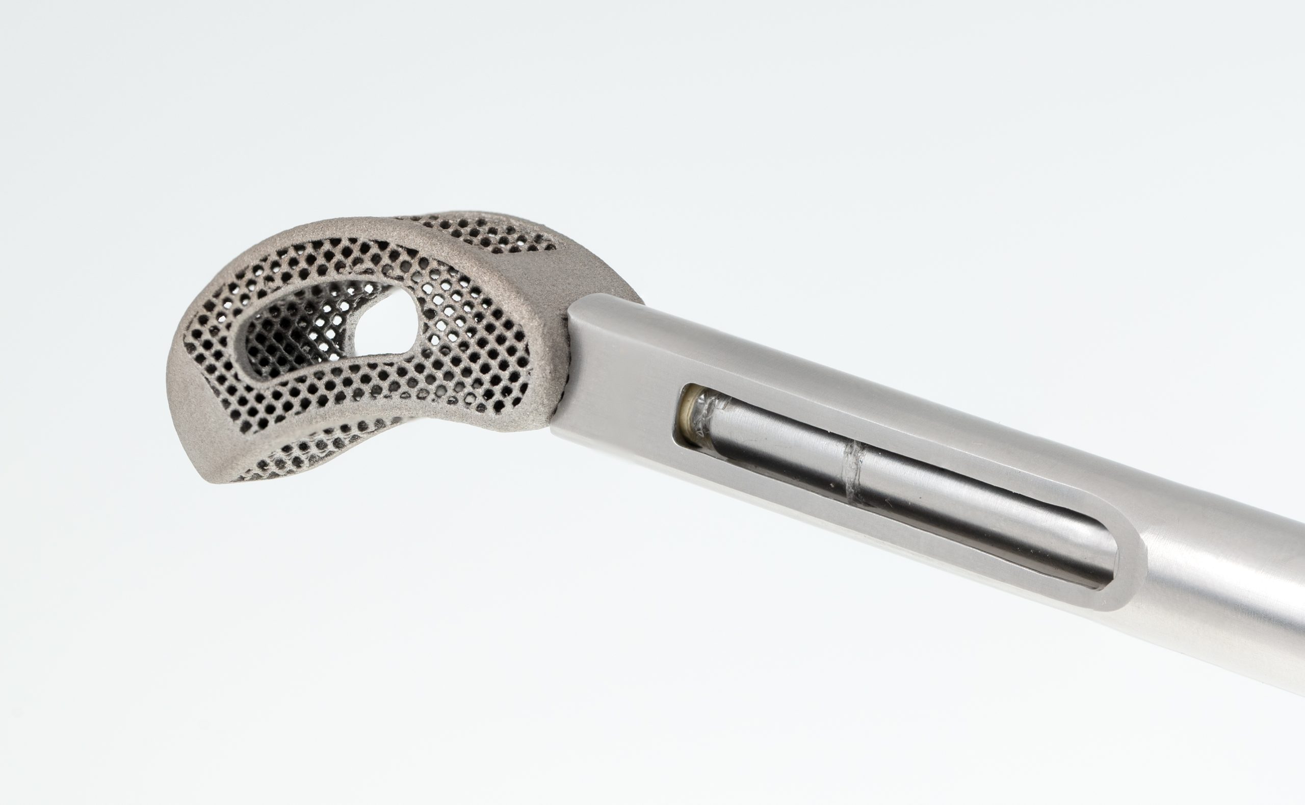A nyomtatás szelektív lézeres szinterezés (SLS) technikával készül, mely az egyik legjellemzőbb fém 3D nyomtatási megoldás. Ez egy olyan porágyfúziós eljárás, melynek során egy-egy vékony fémporrétegen belül CAD adatok alapján lézersugár segítségével lokálisan összeolvasztják a porszemcséket, majd az egymásutáni rétegek kohéziójával jön létre a háromdimenziós geometria. A módszer lehetővé teszi egy strapabíró, beültetésre alkalmas végtermék előállítását, miközben nagy formai szabadságot ad, így összetett geometriájú formák gyártására is alkalmas.